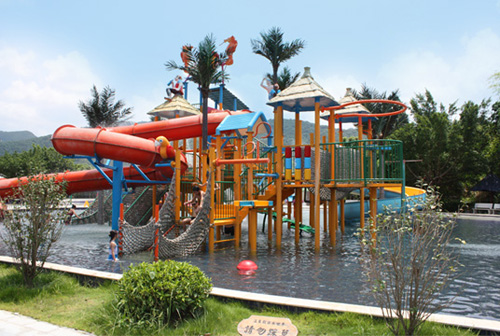 水上樂園設(shè)備:水寨是以加勒比海盜為主題的中型互動水上城堡,占地面積約400平方米,高9米,5道滑梯,1個中型翻桶。