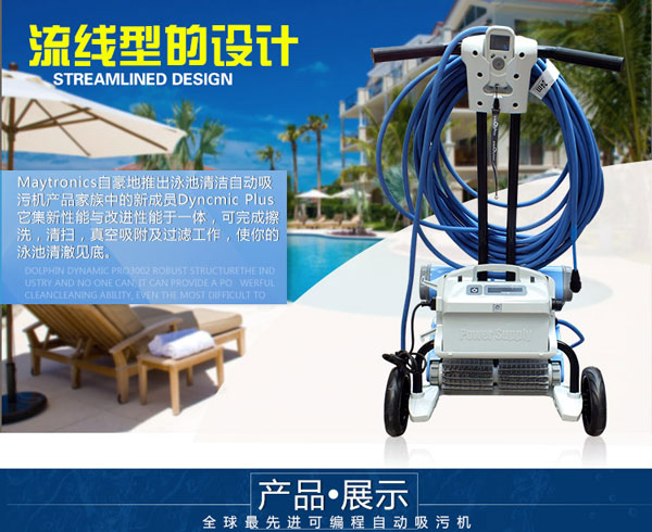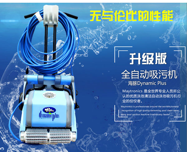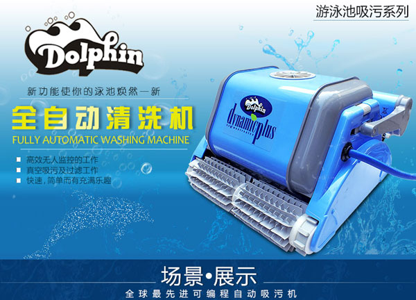 海豚2002全自動泳池吸污機采用帶過濾功能的吸污過濾袋,自動程式化工作,適用不同大小的泳池使用。休積細小,輕巧及操作容易。帶推車,便于使用及收藏。獨立設備,無需安裝。